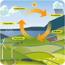 The Water Cycle! - National Geographic Kids The water cycle is also known as the "hydrologic cycle". Precipitation. When too much water has condensed, the water droplets in the clouds become too big and heavy for the air to hold them. And so they fall back down to Earth as rain, snow, hail or sleet, a process known as "precipitation". Collection